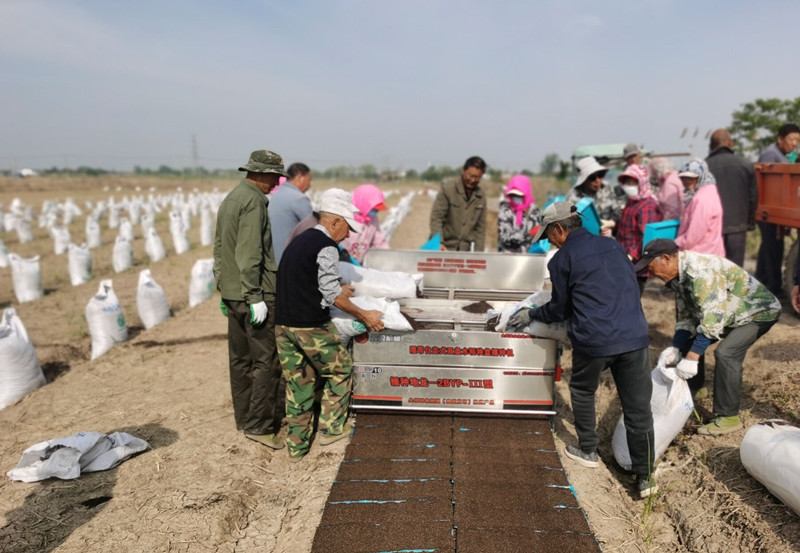 5月9日,大新農(nóng)場(chǎng)全面啟動(dòng)育秧作業(yè),工人們?cè)谒居聿シN機(jī)兩側(cè),分工有序地進(jìn)行流水線育秧,確保農(nóng)業(yè)生產(chǎn)開(kāi)好局、起好步。據(jù)統(tǒng)計(jì),今年自營(yíng)農(nóng)田共6228畝,預(yù)計(jì)需播機(jī)插秧27萬(wàn)盤(pán)。(劉楊)