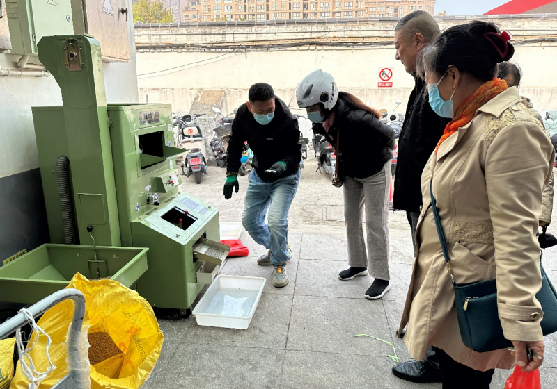 近日,米業(yè)營銷中心工作人員在巨龍路菜市場進行今年新米的現(xiàn)場脫殼,吸引了許多市民的關注與購買,進一步提高了鹽田玉品牌的知名度。同時,為鹽田玉線上線下的“雙11”優(yōu)惠活動起到了很好的宣傳作用。(耿麗園)