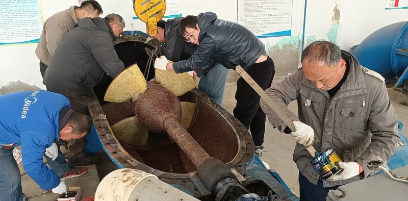 隨著天氣漸冷,為維護(hù)揚(yáng)水站機(jī)械設(shè)備的精度和性能,延長設(shè)備使用壽命,近日,生產(chǎn)生活服務(wù)中心揚(yáng)水站班組加班加點(diǎn)對(duì)機(jī)房內(nèi)所有水泵進(jìn)行大修保養(yǎng)。