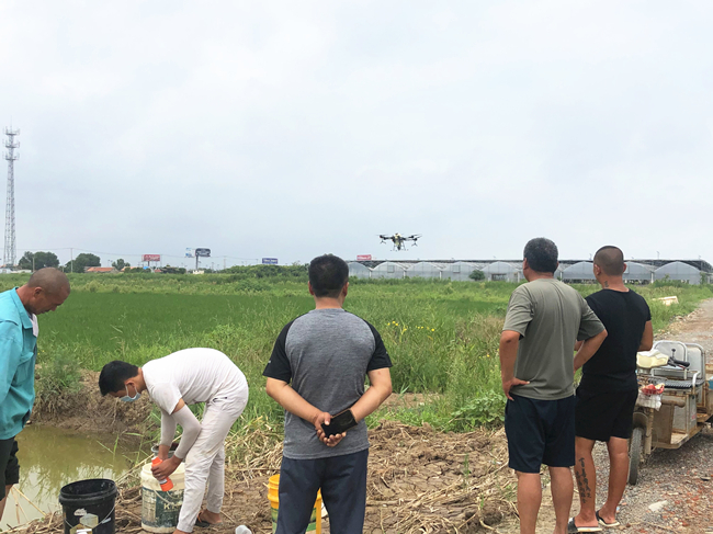 據(jù)生態(tài)種養(yǎng)中心嚴(yán)鑫介紹,現(xiàn)在正值多雨高濕天氣,水稻易發(fā)稻瘟病、稿飛虱、稻縱卷葉螟等病蟲害,為了做好水稻的病蟲害高效防治及除草工作,需要用無人機在稻地進行打藥作業(yè)。