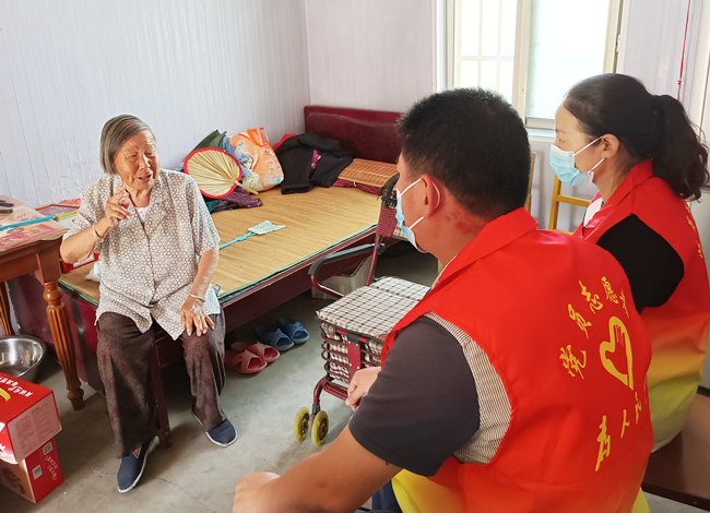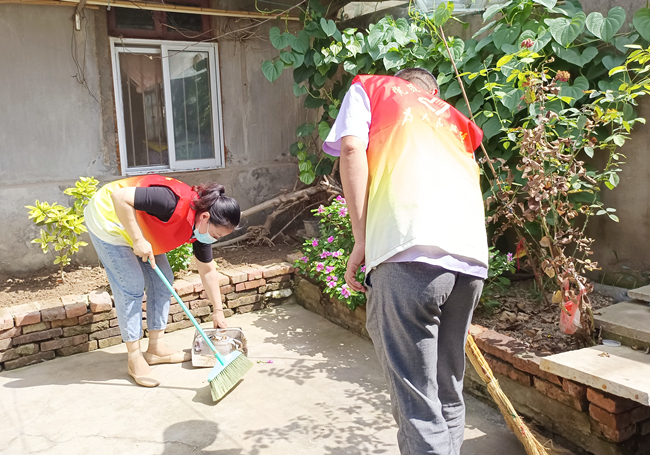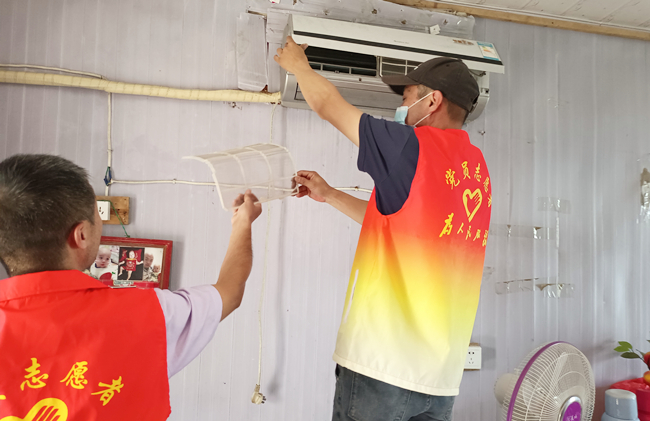 在困難老人家中,黨員志愿服務隊力所能及地幫助他們進行衛生打掃、電器維護等服務,用實際行動將溫暖送到群眾心坎上。