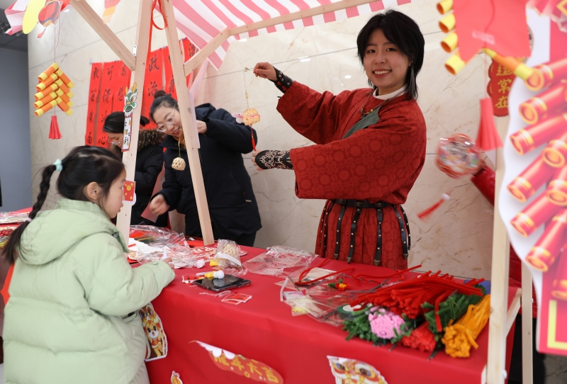 剪窗花、寫對聯,是迎接新年必不可少的傳統習俗,承載了我們對新一年的美好期望。在傳統民俗區,大家沉浸式體驗這些傳統習俗,有的揮毫潑墨,“寫春送?!保械募艏埣那?,剪出各種各樣象征生肖、團圓、吉祥的窗花,不一會兒,一幅幅滿載新年祝福的春聯,一張張年味濃濃的窗花,就展現在大家面前。