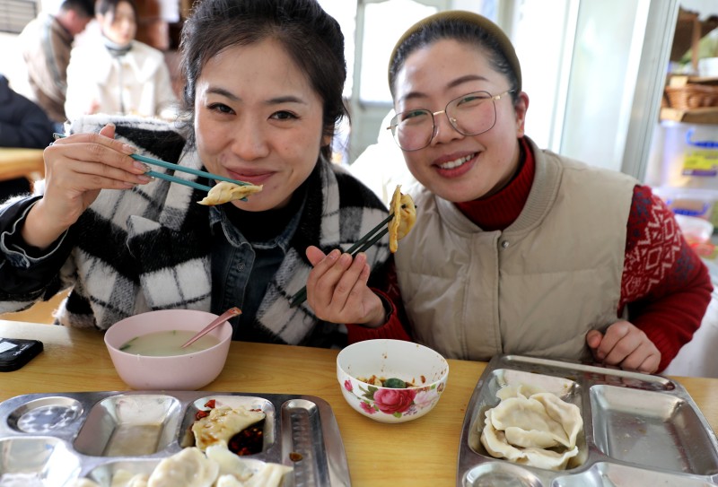 ? ? ? ?活動現(xiàn)場,大家有說有笑,默契配合,有的揉面團(tuán)、有的拌餃餡、有的搟面皮、有的包餃子,大家互相切磋著包餃子的技巧,好不熱鬧,包出來的餃子也是形態(tài)各異,有元寶狀、小船狀、三角狀,還有獨(dú)具特色的花邊餃,女職工們紛紛拿著自己的勞動“成果”,擺在手心互相比較著餃子的形狀,隨著一雙雙靈巧的小手來回舞動著,在一片喜慶、溫馨的氛圍中,一個個口味不一的餃子就展現(xiàn)在大家面前。當(dāng)一盤盤熱氣騰騰的餃子端上桌,食堂瞬間香氣四溢,吃著自己親手包的餃子,每個人的臉上無不洋溢著滿足、幸福的笑容。