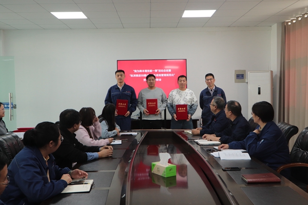 為激勵全體員工進一步干事創業、奮勇擔當,調動廣大職工的生產積極性和創造性,10月23日下午,公司召開“我為降本增效獻一策”活動總結暨“縱深推進5S模式、提升現場管理規范化”勞動競賽表彰會,公司領導班子全體成員、生產班組長參加會議。會議由公司黨支部副書記、工會主席王琪主持。