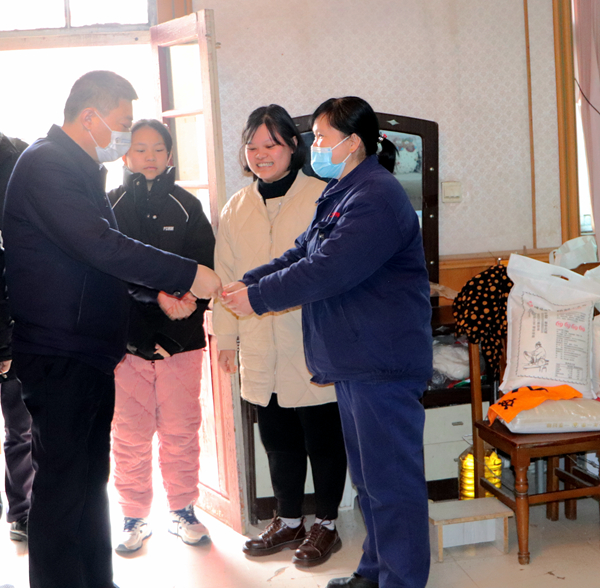 1月25日上午,集團公司總會計師匡友本一行到我公司走訪慰問困難職工,公司總經理韓立新,工會主席袁忠陪同走訪慰問。