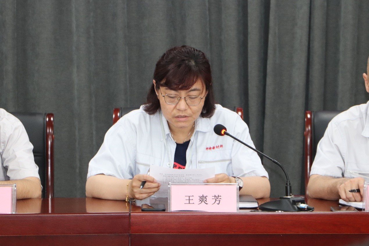 公司副總經(jīng)理王爽芳宣讀“拜師學(xué)藝,崗位成才”活動(dòng)師徒責(zé)任書內(nèi)容。
