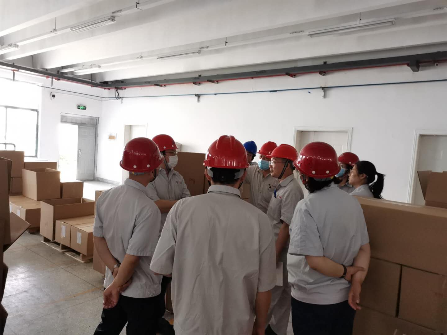 5月25日上午,公司領導班子到二期車間成品絲卷繞區現場辦公,集體會商,研究解決生產難題。
