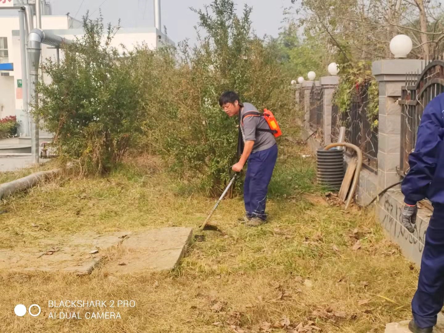 這一提議得到了生產乙班全體黨員的積極響應,各黨員立馬進入車間安排好相應的工作,確保生產安全進行,同時抽調部分員工到污水站集合,大家拿著鐮刀、鐵鍬、耙子、還有割草機,積極參加本次活動。