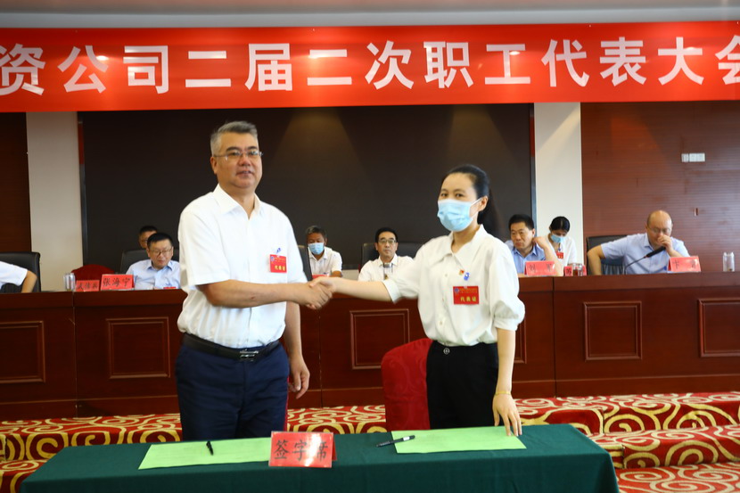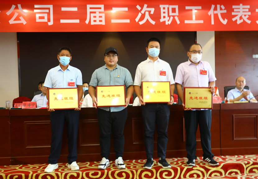 ? ? 會議期間,代表們認真聽取并審議了《工作報告》,審議通過了相關方案,簽訂了《2022年度集體合同》和《目標責任書》,對2021年度先進單位、先進集體、示范班組、優秀員工進行了表彰。各單位還針對下半年的生產經營目標任務進行了表態發言。