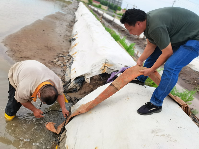 先鋒泵站,程輝師傅撩起工作服擦了擦臉上的汗水,繼續(xù)將潛水泵安置到已廢棄的灘地里,把灘地里的雨水抽干,將廢棄的灘地利用起來晾曬低濃度的鈣液,解決銷售旺季成品鈣液供不應(yīng)求難題。