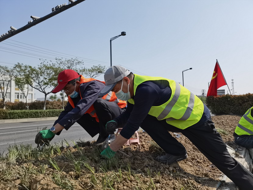 海州灣黨支部組織黨員、職工20余人,從4月29日開始,全力支援公司綠化工程,黨員們自帶工具、自制工具,發揚一不怕苦、二不怕累的戰斗激情,每天工作超過10個小時,直到帶班組長強制命令還要完成最后一塊責任區才罷手。