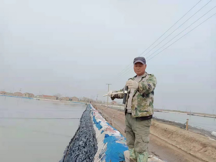 2021年,他服從公司生產機制的轉換,被安排到海濱三組18號灘作為領灘手,負責鈣液生產。為了不浪費每一毫米的蒸發量,每天天剛蒙蒙亮,就能看見他在縱橫阡陌的鹽田間穿梭,根據灘田結構、針對不同季節確定走水路線,每天重復著調節鈣液、修整溝堰、修補塑布的工作,遇到大雨,他就不回家,守在灘上,及時把鈣液按照不同濃度引進鹵臺、鹵窖,雨水結束,第一時間把灘面淡水排掉,將鈣液回引進行晾曬。在生產面積僅有311畝的情況下,他每天要走3萬-4萬步,不僅對他自己的生產單元,對整片鈣液生產單元了如指掌,有多少閘門,多少電線桿,都了然于心。全年下來,生產鈣液28000方,在12個鈣液生產單元中名列前茅,領先超9000方,實至名歸的生產標兵。