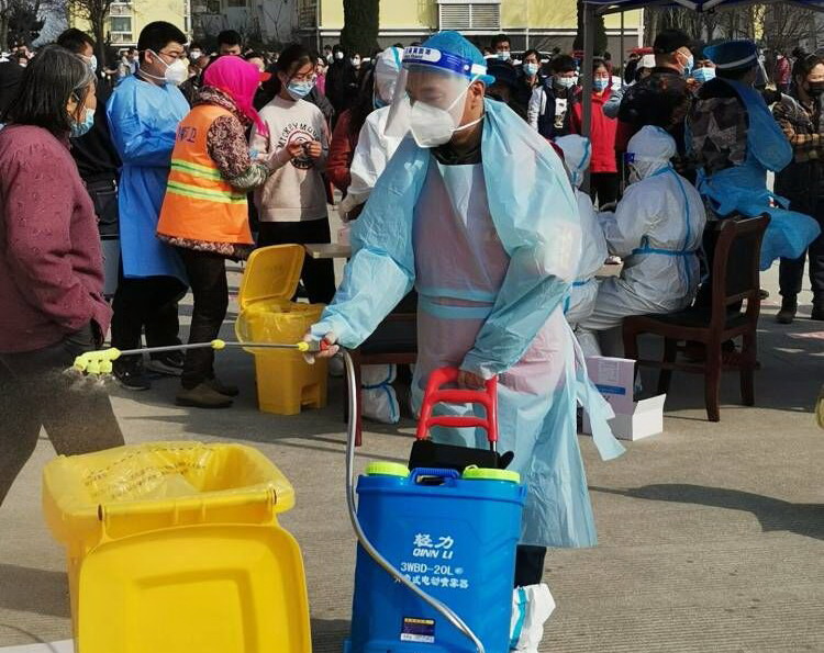 霍正鋼,志愿者隊伍的一員,也是這支志愿服務隊伍中的中堅力量。他,心中有大愛,在海州灣黨支部3月7日發出“馳援社區,共同抗疫”動員令后,他第一個站出來:“疫情就是命令,防控就是責任。身為黨員,我理應模范帶頭,支持新冠肺炎疫情防控工作。”他不僅是這樣說的,更是這樣做的,在昌圩社區每一次的核酸檢測中,他專挑“急、難、險、重”的活。比如消殺工作,這是一個體力活,需要背著足足有20公斤重的消毒液,來回不停的走動,不斷的添加消毒液。有幾次,核酸檢測從早上8點一直持續到晚上8點,足足12個小時,而消殺工作的時長都達到14個小時,不僅是檢測過程中,開始前和結束后的一小時都要消殺到位。14個小時下來,霍正鋼同志穿著密不透風的防護服,里面的衣服濕了又干,干了又濕······。當大家看到他口唇干裂的都掉了皮,問他:“你是沒有喝水嗎?”“不能喝水,忍著吧,喝水就得上側所,耽誤時間,這波病毒隱匿性強,傳播速度快,不能有一絲懈怠。”他憨厚的說著。