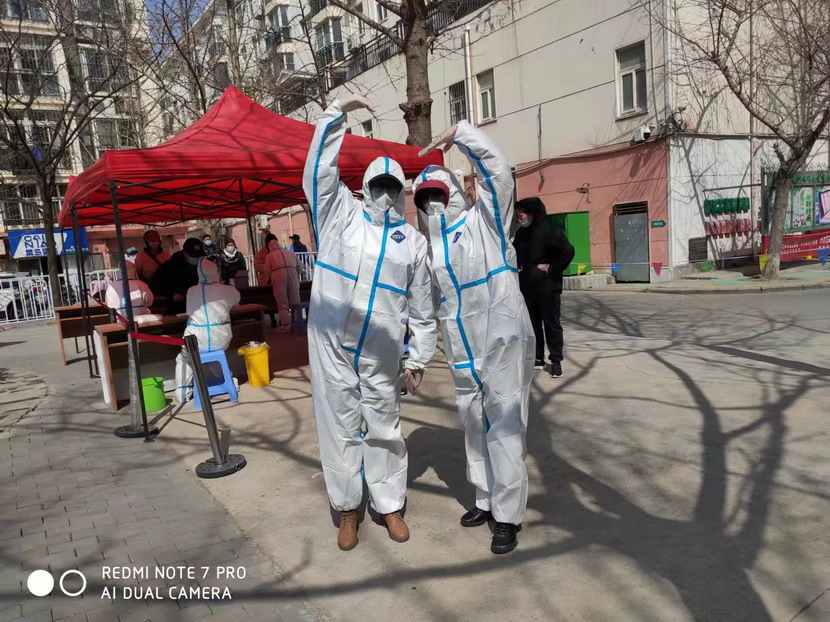 雖然地處開發區,但是這個小區的防疫任務一點也不輕松,作為連云港最大的社區之一,昌圩社區由裕源、新城花小、昌圩湖三個小區組長,常住人口近3萬人,防疫責任重大,工作繁重。市委動員令下達之后,廣大黨員紛紛請戰,在臨時黨支部帶領下,積極參加社區疫情防控工作。黨支部書記李明、紀檢委員于洪亮每天組織工作,檢查督導,親自動手,掛標語、拉橫幅,積極宣傳疫情防控政策措施。臨時黨支部副書記蘇玲,每天五點多就得起床做飯,把兩個女兒先安頓好,她最小的女兒才一周歲,大女兒也不過才7歲,然后7點不到就穿上了志愿者紅馬甲,挨家挨戶通知核酸檢測。還有海州灣公司總經理霍正剛堅持每天為小區進行環境消殺,內退黨員孫芳成為“專業”核酸檢測員。在她們的感染下,廣大黨員、職工朱春年、夏軍、孫健、朱文健、孫銀、秦黎明、邱榮斌、伏彩保、韓永光,等等等等,紛紛走上前線。