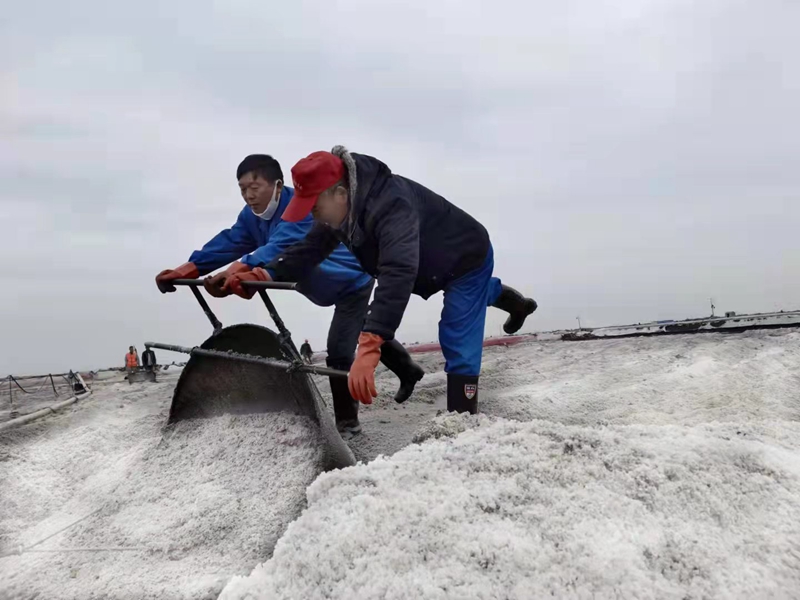 一線職工克服零下數(shù)度的嚴峻氣候,24小時馬不停蹄的搶扒鹽。原鹽搶收進入到了大決戰(zhàn)時刻。