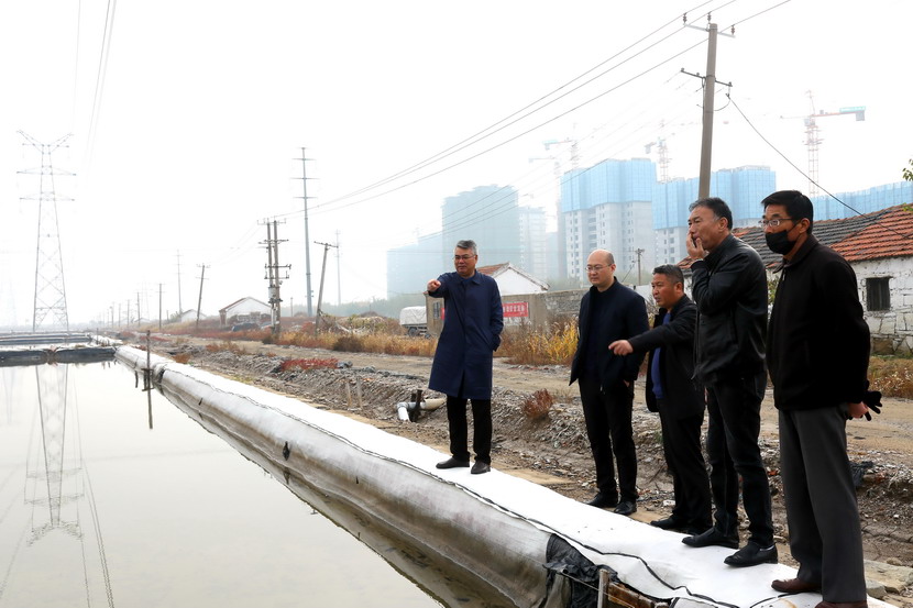 17日上午,公司領導王德志、卞霄帶領礦鹵制鹽升級工程指揮部一行調研灘地改造項目。