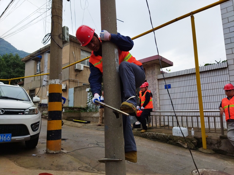 上午,翔立一班人參與了標準化住宅小區弱電井光纜分纖箱整治,從用戶端子皮線光纜的打碼貼標到小區光交箱托盤尾纖和分光器的整理擺放等都一一學習。下午,又跟隨工作人員到了墟溝“城中村”西南山散戶老城區進行了線纜整治現場學習,在這些非標準小區,大家還興致勃勃的練習了腳扣登桿作業。