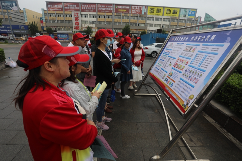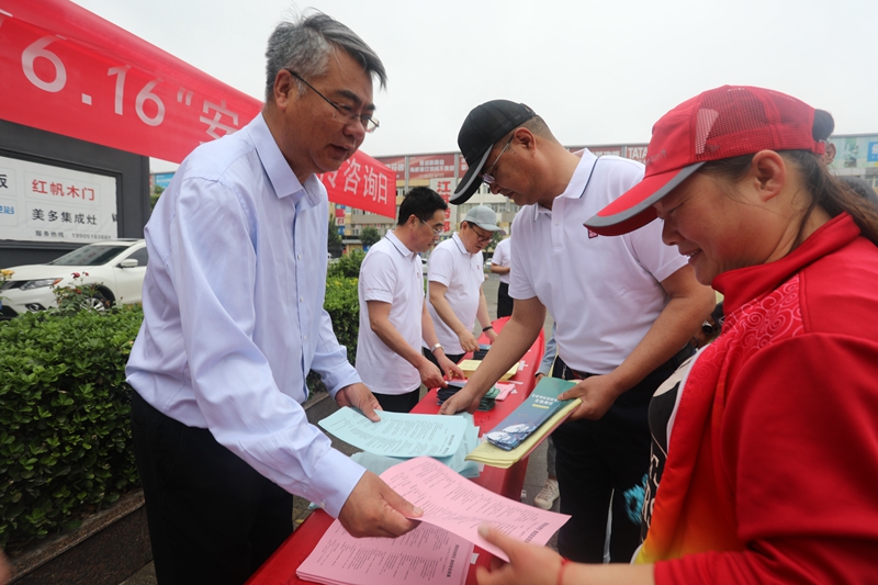 今年6月是第20個(gè)全國(guó)安全宣傳月。6月16日,投資公司領(lǐng)導(dǎo)班子全員參加,圍繞“落實(shí)安全責(zé)任,推動(dòng)安全發(fā)展”主題,組織20余名安全管理人員在光伸建材廣場(chǎng)開(kāi)展“6.16安全生產(chǎn)宣傳咨詢?nèi)铡被顒?dòng)。