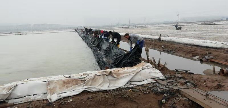 由于勞動力較為缺乏,人工扒鹽分為兩個班次白班和小夜班。工人們在完成各自班次任務(wù)的同時,還要承擔(dān)起后期繁瑣的相關(guān)工作。例如:扒鹽前要將塑池內(nèi)的塑布整理、收縮到位、用活碴機(jī)對準(zhǔn)備要扒格塊進(jìn)行活碴、成廩后對鹽廩全面覆蓋、并抽出專人對大夜班空檔期電纜線及機(jī)電設(shè)備進(jìn)行看管等等。其中池板整理是一項緊急活,扒完鹽后鹵水要緊跟著進(jìn)池,小夜班的人下班后有時只睡幾個小時,早上7點多就來到灘頭整理池板,為抓緊灌池爭分奪秒爭。