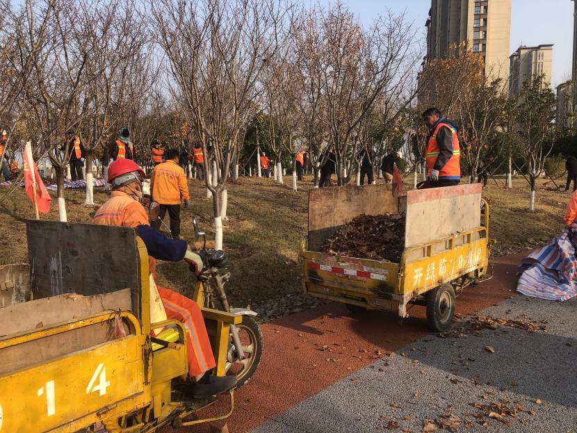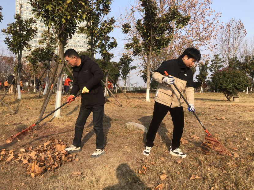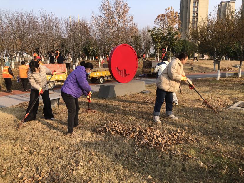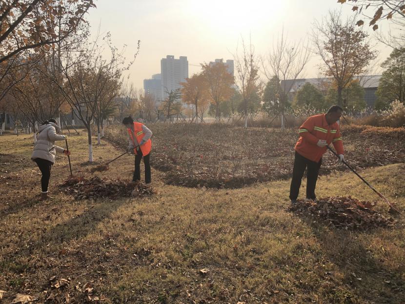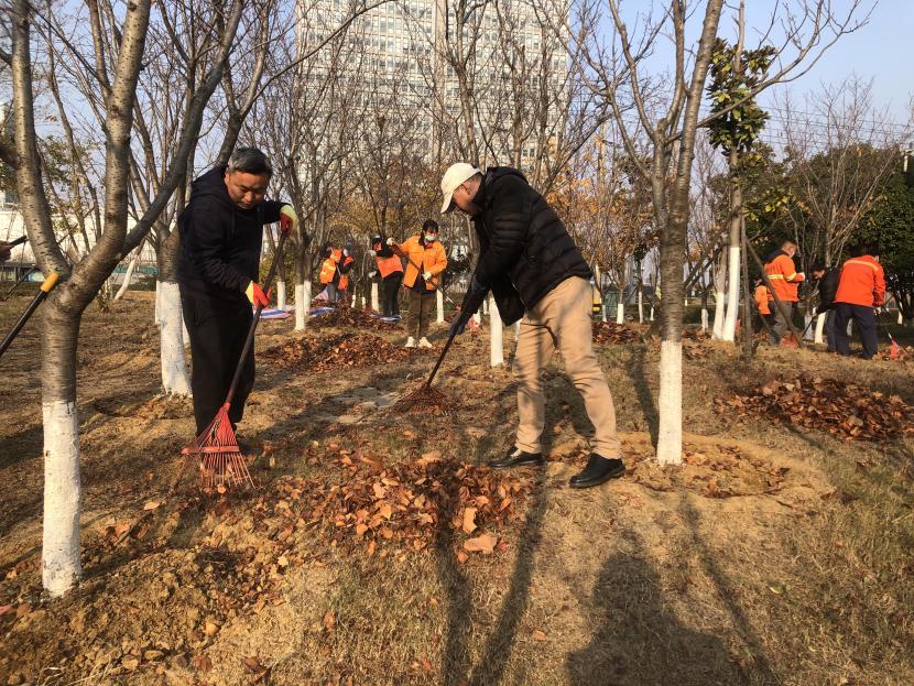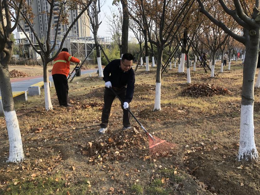 活動現場,黨員同志、積極分子分為兩撥,分別從創智綠園北門和東門對園內雜草落葉進行清除。在戴好手套,做好防護、防凍措施的同時,紛紛拿著掃帚、耙子等工具,統籌安排、分工勞作,齊心協力,有的用掃帚掃落葉、有的用袋子裝落葉、有的用耙子摟落葉……大家忙得熱火朝天,充分發揚不怕臟、不怕苦、不怕累的黨員先鋒本色,創智綠園內處處是同志們清理雜草落葉的身影,構成了一道亮麗的風景線,經過一個多小時的辛勤勞動,兩撥隊伍順利“會師”,沿途雜草落葉被清理得干干凈凈,公園環境也得到明顯改善。