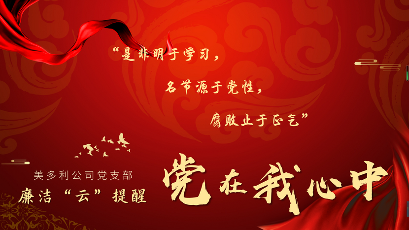“是非明于學習,名節源于黨性,腐敗止于正氣”,“撐起自律的綠傘,秉公道執仁政,守得四季常青,為廉政保駕;豎起正義的風帆,劈歪風斬邪浪,迎來海闊天空,為廉潔護航。”黨的一百零一周年生日來臨之際,美多利公司全體黨員收到支部發送的廉潔提醒短信。
