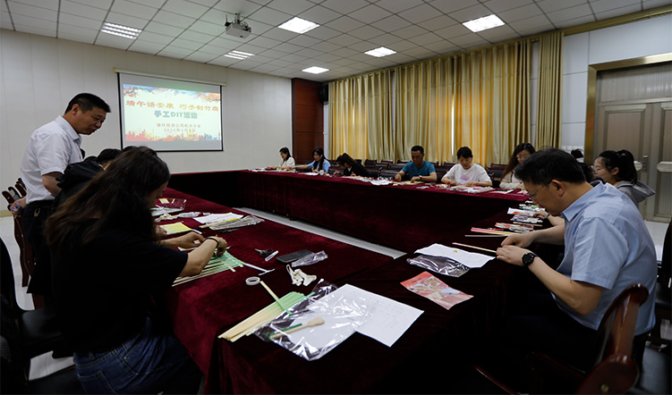 端午話安康,巧手制竹扇。走進機關中型會議室,工作人員向大家介紹了竹扇的編制方法。隨后,大家挑選了自己喜歡的樣式和顏色,按照制作要求“挑一壓二、挑二壓二”的方法將竹條編織固定,并融入了自己的想法和創意進行編織,經過一個多小時的努力,一根根竹條在大家的巧手下變成了一把把精致的扇子。