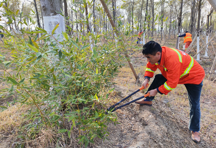 當(dāng)前,為扎實(shí)做好冬季樹(shù)木養(yǎng)護(hù)工作,提高樹(shù)木的過(guò)冬、抗病和抗蟲能力,李傳武帶領(lǐng)班組全員開(kāi)展樹(shù)木涂白行動(dòng),悉心為樹(shù)木披上“防寒衣”。為達(dá)到同一標(biāo)準(zhǔn),他采用“立桿涂白法”,首先安排專人進(jìn)行劃線,將行道樹(shù)涂白高度統(tǒng)一控制在1.2米,使區(qū)域內(nèi)涂白高度保持一致,確保樹(shù)木涂白效果與植物整體美觀,經(jīng)過(guò)10天的持續(xù)工作,完成10000余棵行道樹(shù)涂白工作(完成工作量約20%)。