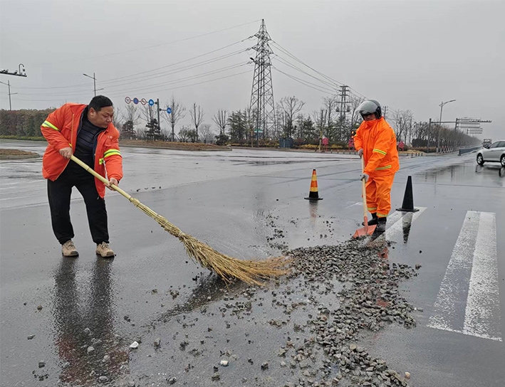 聚焦“兩個作用”、提升應急處理。支部堡壘與先鋒表率作用有力得以彰顯。該分公司黨員生產骨干張學軍、徐習東、陸永柱,巡現時發現轄區道路現場車輛拋灑石子,第一時間安全迅速奔赴清理路段,與同事齊心合力揮動手中大掃把,清掃石子近1000多米長,轉運清倒30余車,工作中爭先恐后場景成為雨中道路上最美感人畫面。(楊波)