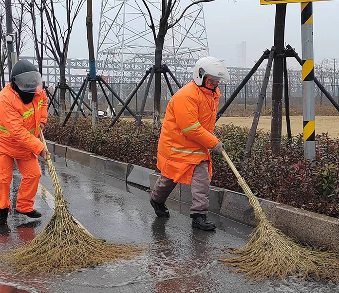 冬雨綿綿,持續低溫117日上午,保潔分公司全員上下無懼冬雨低溫天氣,堅守崗位,用掃帚譜寫著一曲雨中清掃的篇章,一道道橘黃色身影成為了雨中最靚麗的風景