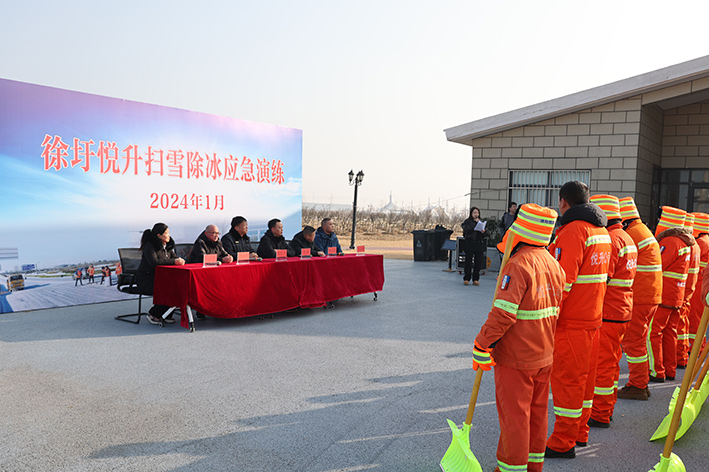 冬季是冰凍、降雪等自然災害高發季節,為切實做好冰雪災害性天氣的應對及突擊保障工作,搶險救災減少損失,1月4日下午,悅升公司聯合徐圩城建公司及社事局、徐圩環衛所在上海路進行掃雪除冰應急演練。徐圩城建公司副總經理肖堅,徐圩環衛所所長郁紅衛,徐圩新區社會事業局環衛科科長趙國慧、悅升公司董事長馮如師、總經理徐習華及各公司相關負責人參與本次演練。