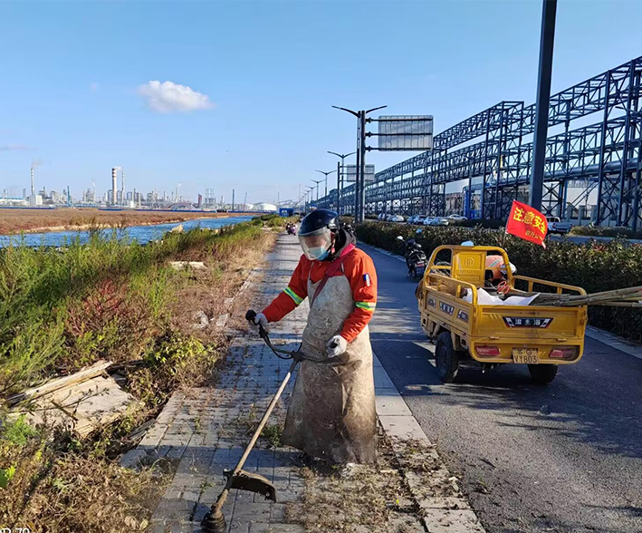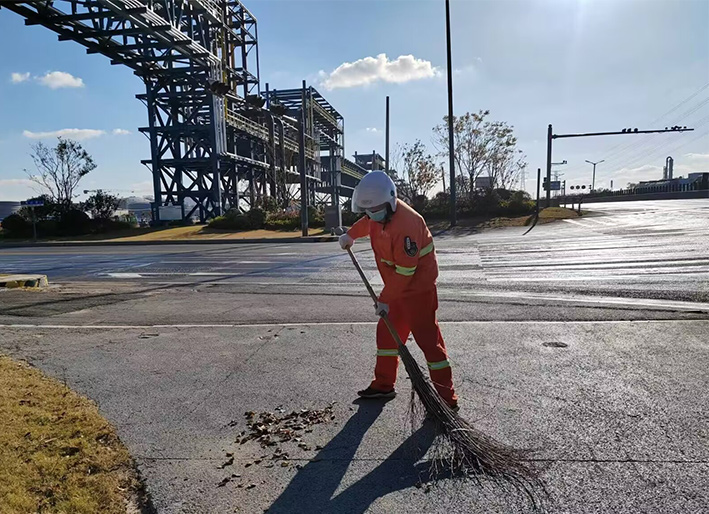 入冬以來,該分公司園區兩個班組35名保潔衛士無懼徐圩冬季寒風浸透身體,身穿橙色工作服,每天持續工作達6個多小時,不間斷對園區近20多條道路進行巡查,轉運打包各類垃圾高達400余包,清掃輔道岔路口石子,泥土50多處,用辛勤勞作汗水彰顯徐圩悅升人敬業勞動風采。