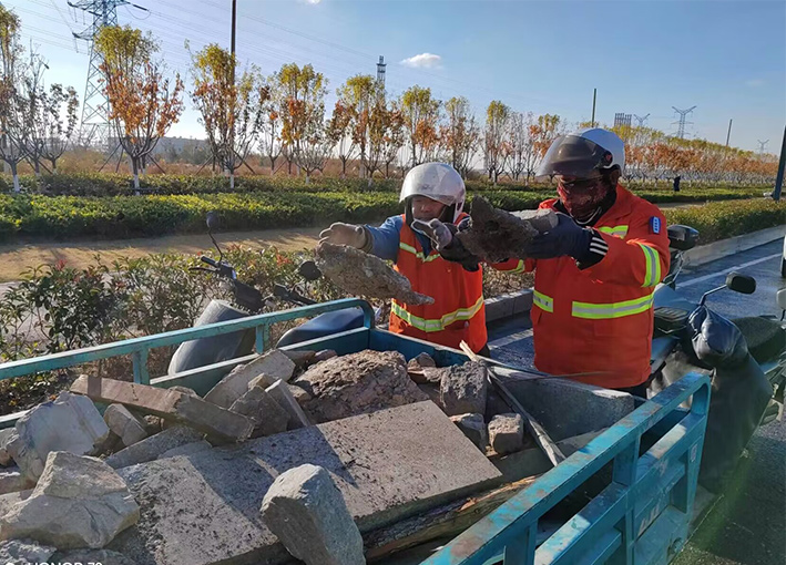 及時配合徐圩城建處理陬山路、石化七消防通道等路段施工產生動態各種垃圾20多車,再次轉運陬山路主道兩側綠化帶中石塊2000多斤。針對園區建設發展情況,序時推進石化五道,四道樣板路工程打造,組織人員突擊清理輔道雜草近1000余米長,撿拾管廊下各種垃圾300余袋。勞動現場,黨員生產骨干薛明柱、朱海勇等同志先鋒示范閃亮道路最前沿,用實際行動保障園區美麗環境。