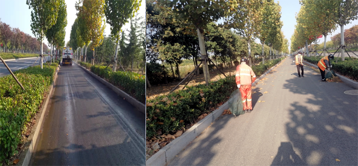 持續加大環衛巡查力度。該分公司制定詳細預案,成立落葉期專項工作小組。采取人機結合方式,最大化保證清掃效果。加大機械化清掃力度,按照板橋工業園區道路環境,對落葉集中路段進行重點清掃,巡回收集,確保隨落隨清。合理調整環衛保潔人員,重點清掃機械清掃后的停車等障礙死角,適時延長人工保潔作業時間,加大落地枯死枝撿拾力度,為清掃車作業清除障礙。
