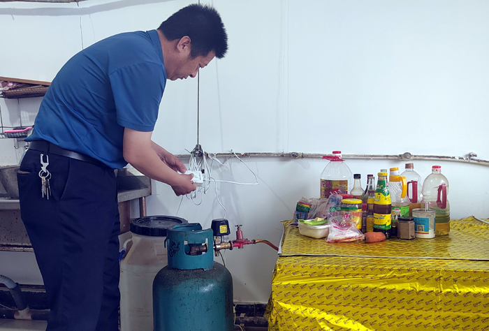 ? ? ? 該中心,工作人員深入“一號樓”開展深入“一號樓”對超市、浴室重點場所,對燃氣設備安裝、使用、保養情況和消防設施器材進行安全隱患排查“回頭望”。重點對對單位食堂及被租賃房屋消防、液化氣、滅火器相關實施細致檢查。對用電私拉亂接、違規接電、用電器無保護、觸保器失靈等隱患,責令嚴格流程限期整改到位。