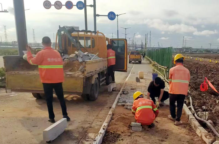 走進新區石化十路一處施工現場,“市政尖兵們”正井然有序地對因施工車輛碾壓造成人行步道地磚破損處進行修復。人工拆除原受損人行道地磚,對缺失路牙石進行補缺并壓實整平基礎、定位放線、更換面包磚和盲道磚,經過2個多小時緊張施工,原坑坑洼洼的路面,取而代之是敞亮平整。多日來,默默無聞的市政“尖兵”們用勤勞的雙手加速施工進程,用實干詮釋徐圩悅升市政人的新風采。目前,已完成徐圩大道、云河路等10條主次干道兩側人行道集中巡檢修補工作,共整治32處,更換面包磚約96平方米、路緣石33米、盲道地磚11平方米。
