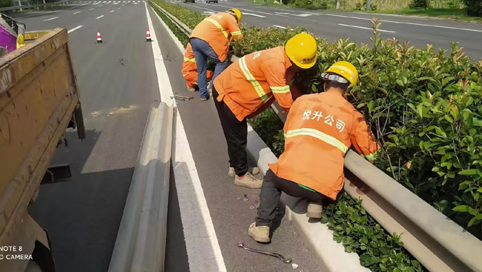 維修現(xiàn)場,道路養(yǎng)護(hù)工人正在徐新路靠近242省道處更換一處波形護(hù)欄,隊(duì)員們手持專用工具快速、高效施工,順利更換波形鋼護(hù)欄2節(jié),總長8米,及時消除了安全隱患,有效維護(hù)道路安全暢通。本次對徐新路沿線轄區(qū)波形護(hù)欄搶修,嚴(yán)格按照城建部門要求,對中斷的道路護(hù)欄要求維修人員及時進(jìn)行給予補(bǔ)接,對個別出現(xiàn)嚴(yán)重?fù)p壞的護(hù)欄進(jìn)行拆除換新。此次共完成徐新路沿線4處地段波形護(hù)欄更換工作。更換護(hù)欄8節(jié),32米。達(dá)到道路設(shè)施齊全、安全、美觀目的。(楊維軍)