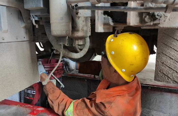 ? ? ? ?入夏以來,保養和維修的環衛車輛較平時都有所增加,給維修班組增加了不小的壓力,大家整天都處于“戰斗”狀態。高峰時期,一天進車間維修保養的大、小車輛達8臺。在一處維修現場,班長丁寶清與維修工陳寬軍正在貓著腰,歪著頭,對清掃車油濾部件進行檢修、更換,高溫天氣,維修車輛對工人身體素質確實是一種嚴峻的考驗,不一會兒,丁寶清額頭上冒出的汗珠沿著臉頰、下巴往下滴,他抹了抹,手上油漬和污垢在臉上留下了一道道黑痕,他們用實際行動詮釋著愛崗敬業的真諦。經過1個多小時的兩人默契配合,順利完成此次保養任務。休息片刻,又投入到新一輪的車輛檢修中 。